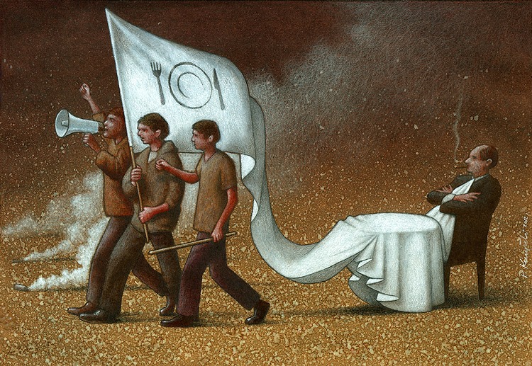 נקודת המוצא של הצייר והמאייר הפולני עטור הפרסים, פאוול קוצ’ינסקי, היא שהוא אינו יכול לשנות את העולם, וכי הוא “רק כרוניקן של זמננו”.